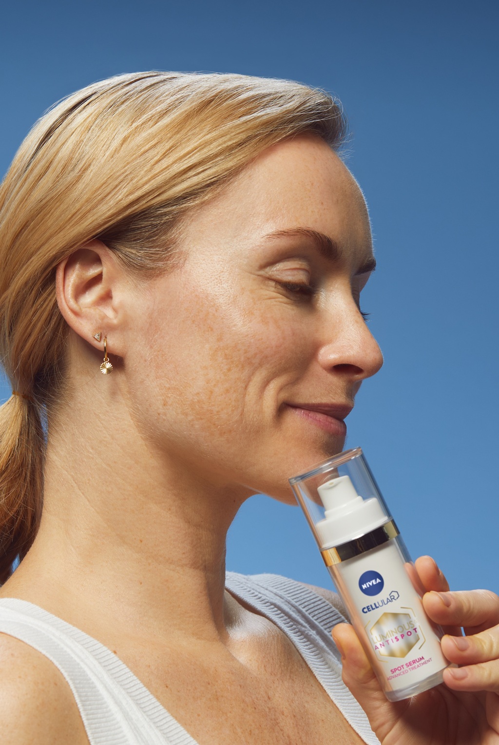 Le LUMINOUS630® ANTISPOT DARK SPOT ADVANCED SERUM de NIVEA aide à estomper les taches brunes visibles et cachées grâce à une formule associant notre ingrédient breveté Thiamidol à l’Acide Hyaluronique et à la Vitamine E.