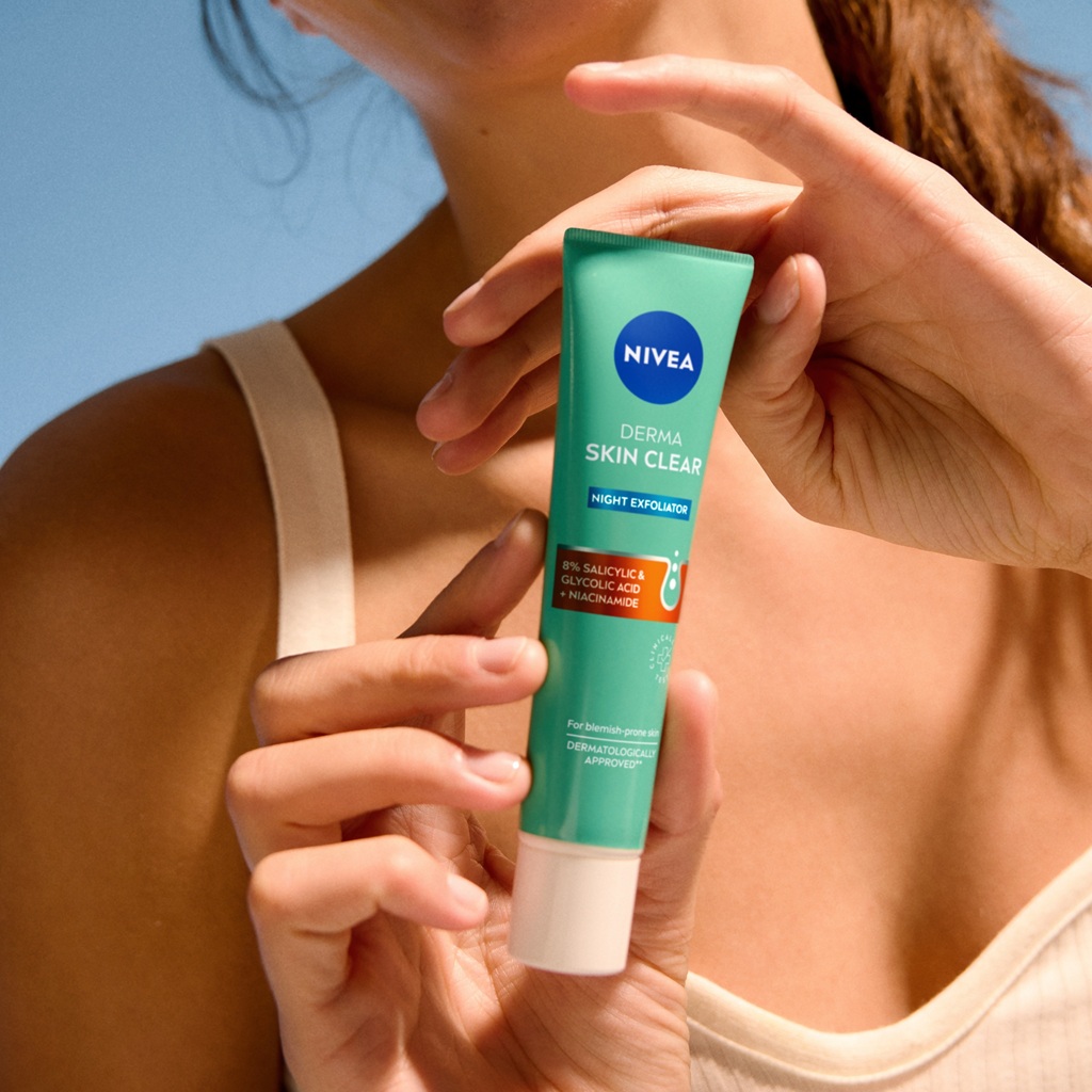 Si les poussées d’acné sont une cause majeure de vos rougeurs, découvrez la gamme NIVEA Derma Skin Clear. Elle associe acide salicylique et acide glycolique à d’autres ingrédients bénéfiques pour aider à combattre les imperfections et réduire les rougeurs du visage. Toutes les formules sont douces et ont été testées cliniquement ; des études NIVEA ont montré jusqu’à 93 % de teint visiblement plus net en sept jours.