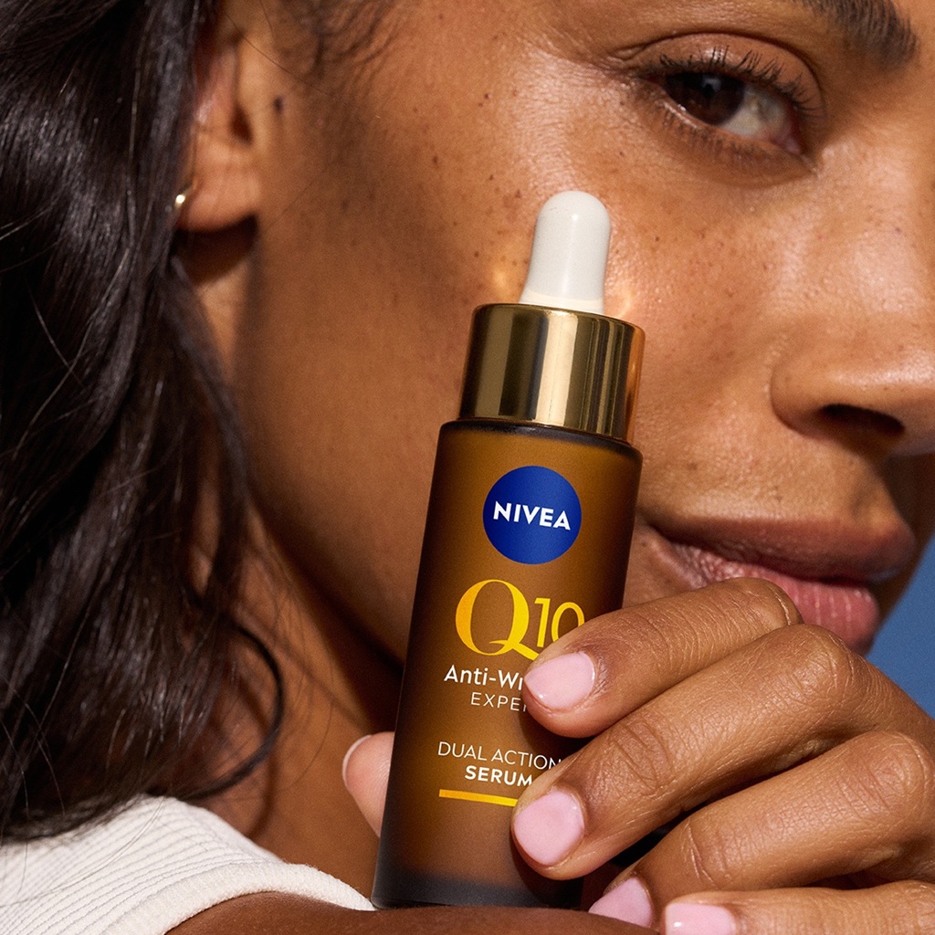 Une fois la peau propre, elle est prête à profiter des ingrédients actifs. C’est là qu’un sérum ciblé peut vraiment faire la différence. Le NIVEA Q10 Anti-Wrinkle Expert Dual Action Serum est conçu pour aider à réduire l’apparence même des rides profondes, grâce à son association de Q10 pur et de la technologie innovante Glycostop, qui aide à protéger le collagène de la glycation, un processus naturel pouvant conduire à un vieillissement prématuré. Ce sérum fonctionne à merveille sur les rides du visage, en particulier autour des yeux et de la bouche ; il stimule l’hydratation pour une peau instantanément douce et lisse.