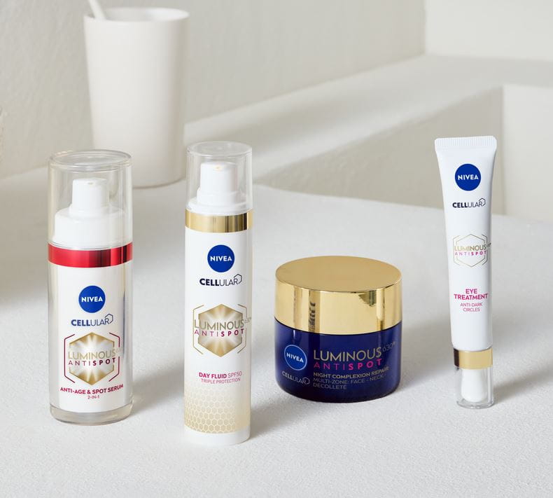 LUMINOUS630® Anti-taches est le soin révolutionnaire de NIVEA contre les taches pigmentaires, qui agit sur votre peau pour lui donner un aspect plus unifié et lumineux. Après l'énorme succès du sérum ANTI-TACHES, numéro 1 des ventes en Europe1, nous avons développé toute une gamme de soins innovants, pour vous aider à dire au revoir aux taches pigmentaires !
