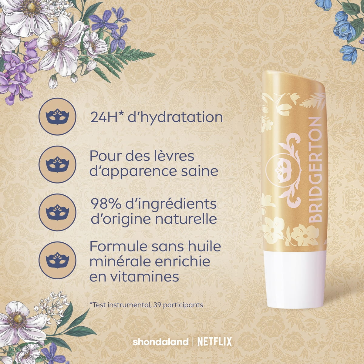 Labello x Bridgerton Édition limitée : profitez d'une hydratation 24 h/24 avec le baume à lèvres Labello Vanilla Biscuit. Fabriqué à partir d'ingrédients naturels et recyclable pour un avenir durable.