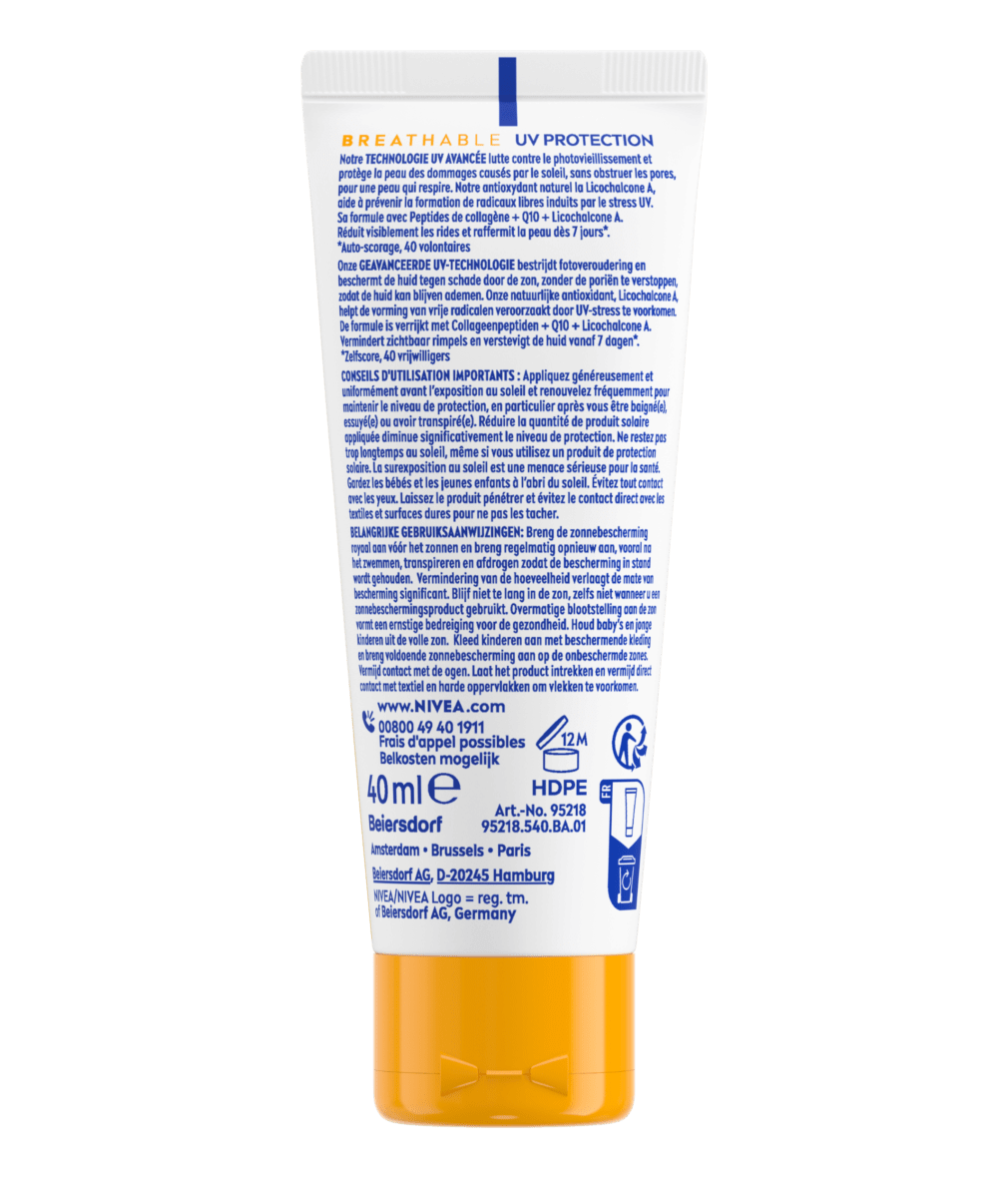 - NIVEA PREND SOIN DE VOTRE PEAU – Formule sans Octinoxate, Oxybenzone, Octocrylène et Microplastique.