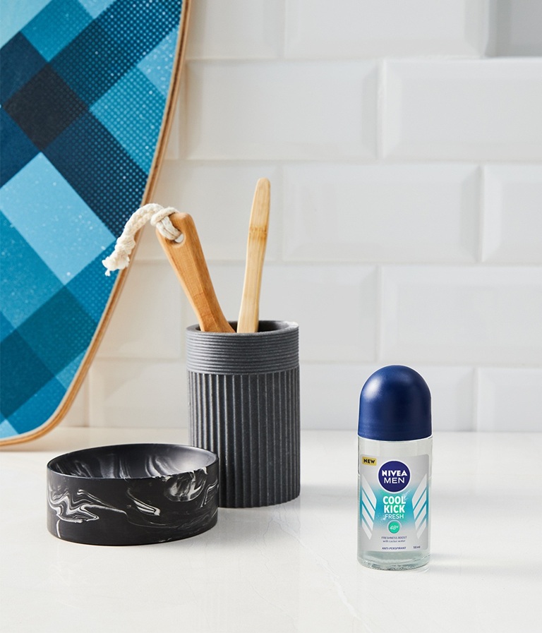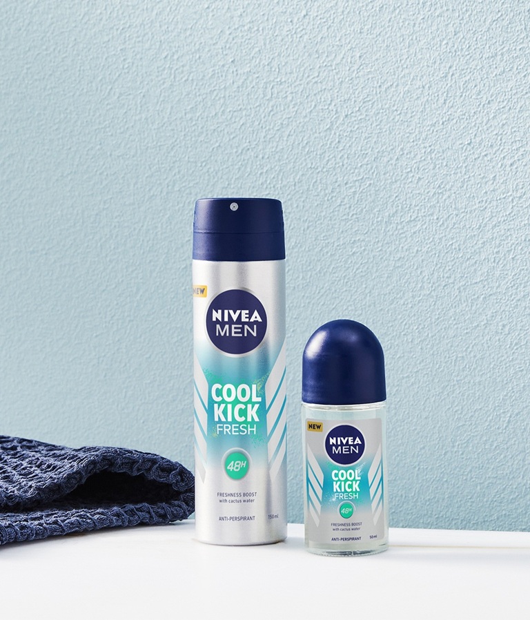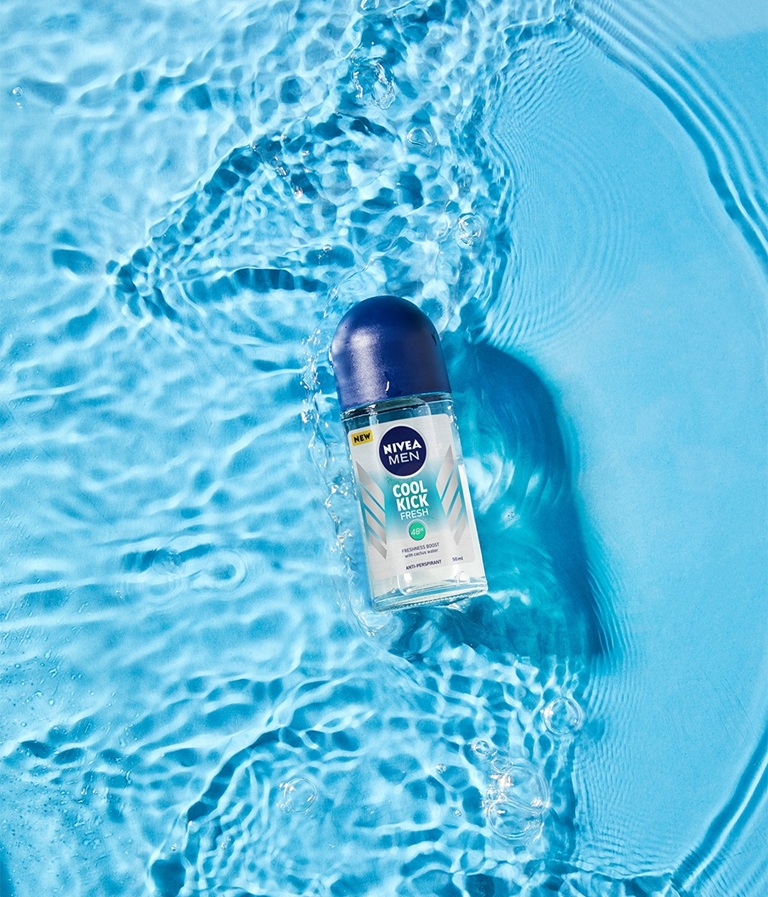 NIVEA MEN Fresh Kick Anti-Transpirant Roll-On pour un rafraîchissement puissant à l'eau de cactus. L'anti-transpirant offre une protection fiable pendant 48 heures ainsi qu'un soin de la peau.