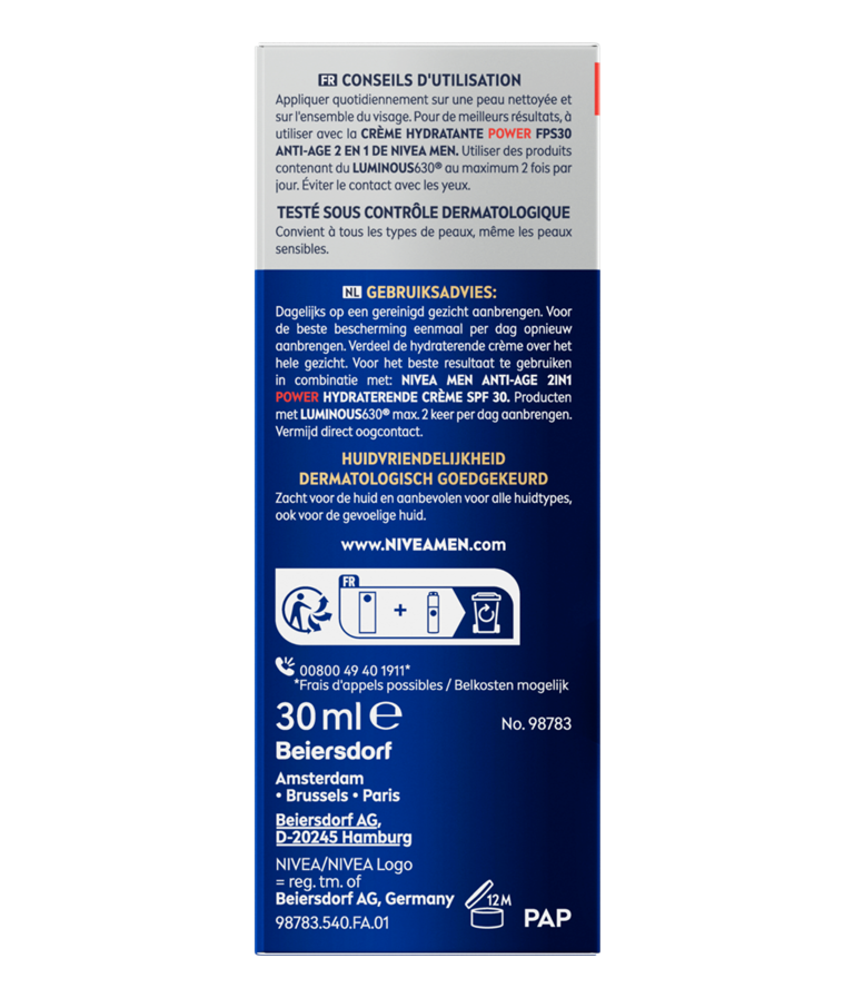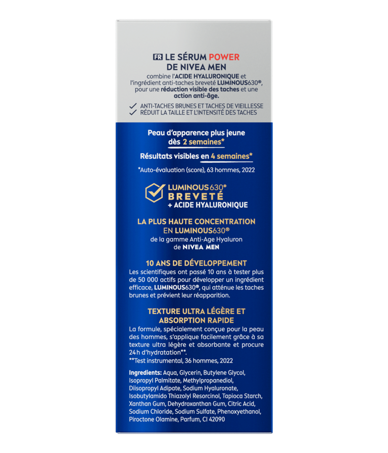 C’est l’un des seuls de la gamme Luminous 630 de NIVEA qui ne contient pas d’alcool, avec un parfum moins fort que les autres Luminous 360, même s’il reste assez présent. Malgré l’absence d’alcool, il peut toutefois être un peu agressif pour les peaux à tendance rosacée ou sensibles, notamment à cause de la présence de parfum et d’autres adjuvents susceptibles d’irriter ce type de peau. Pour finir, il est indiqué de l’appliquer une seule fois par jour, mais je pense qu’avec une seule application quotidienne, les résultats sur les taches pigmentaires risquent d’être limités.
