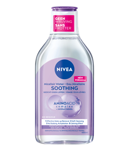 Un nettoyage doux est essentiel pour la peau sèche et la peau sensible. Les produits nettoyants doivent être doux pour la peau, apporter une hydratation adéquate et ne pas l’irriter. Découvrez les produits nettoyants pour peau sensible de NIVEA : un fluide nettoyant dissout le maquillage et le mascara et apporte de l’hydratation à la peau. Les derniers fluides de ce type reposent sur une technologie micellaire innovante. Grâce à cette technologie, le maquillage et les impuretés sont captés et retirés sans frotter. En adoptant cette méthode de nettoyage du visage tout en douceur, on peut réduire les rougeurs, soulager les sensations de tiraillement et lutter contre les zones sèches. Un lait nettoyant est également recommandé pour la peau sèche et sensible. Comme sa formule est généralement très douce, l’équilibre naturel de la peau est préservé et les impuretés sont éliminées efficacement. Et si le temps manque ? Des lingettes démaquillantes et nettoyantes très pratiques font alors l’affaire.