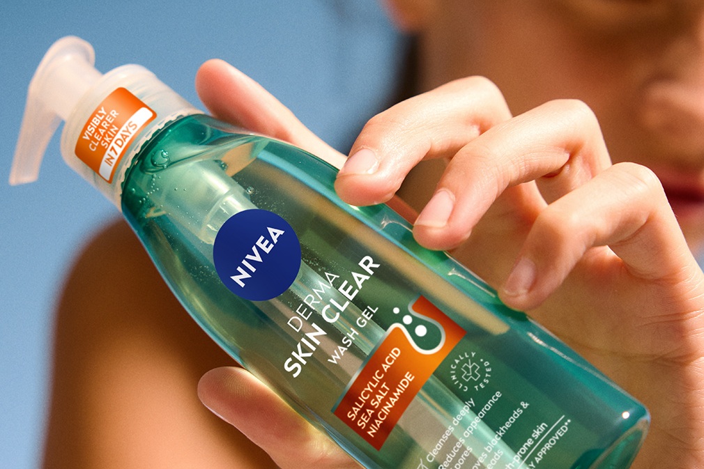 Begin je routine met het zacht Reinigen van het gezicht met een geschikte dagelijkse reiniger. Zo verwijder je vuil en overtollige olie zonder de natuurlijke vochtbalans te verstoren. De NIVEA Derma Skin Clear Wash Gel reinigt diep om de poriën te zuiveren en overtollig talg te verwijderen. De formule is specifiek ontwikkeld voor een huid met neiging tot onzuiverheden en helpt onzuiverheden zichtbaar te verminderen en hun terugkeer te voorkomen.