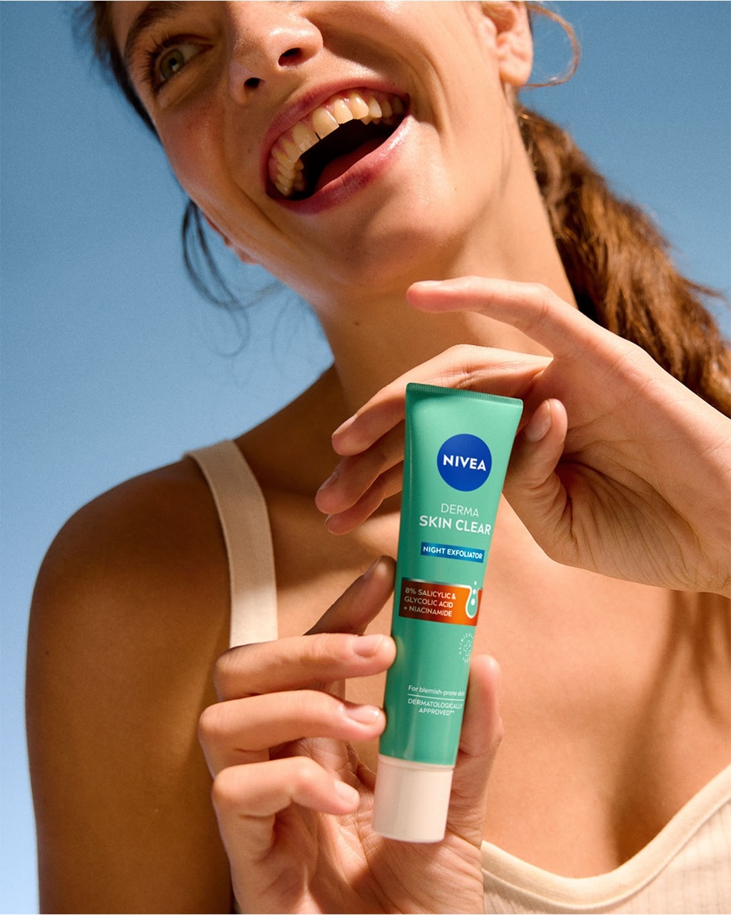 If a build-up of dead skin cells is causing outbreaks and blemishes, then NIVEA Derma Skin Clear could help you address these concerns. Concentrated with Niacinamide, Salicylic Acid and Glycolic Acid, these products should support you in removing dead skin cells and preventing new blemishes from appearing. Note that the Derma range is not recommended for sensitive skin conditions.