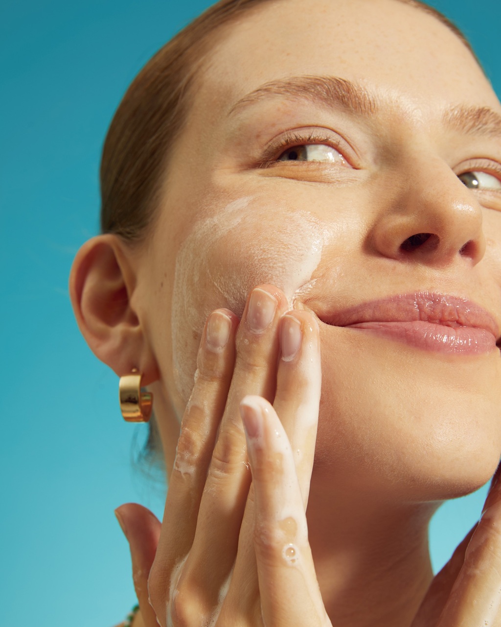 Cleansing the face before exfoliating is also beneficial as this opens up the skin’s pores.