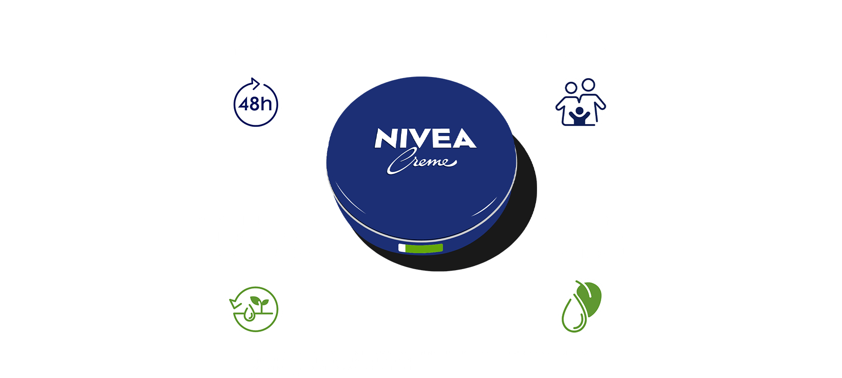 Je geliefde NIVEA Creme. De crème die al generaties lang de huid van je hele familie4 beschermt. Je ouders en grootouders wisten altijd dat ze konden rekenen op de beschermende verzorging, net als jij vandaag.