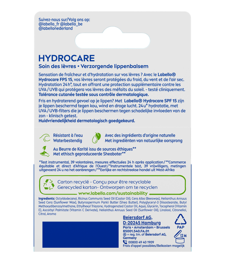 Fris en hydraterend gevoel op je lippen met Labello® Hydrocare SPF 15
