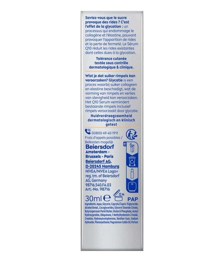 Het Q10 Serum met Dubbele Werking onthult een nieuwe anti-glycatie technologie dankzij de combinatie van Pure Q10 en GLYCOSTOP. Het vermindert diepe rimpels en voorkomt hun verschijning.
