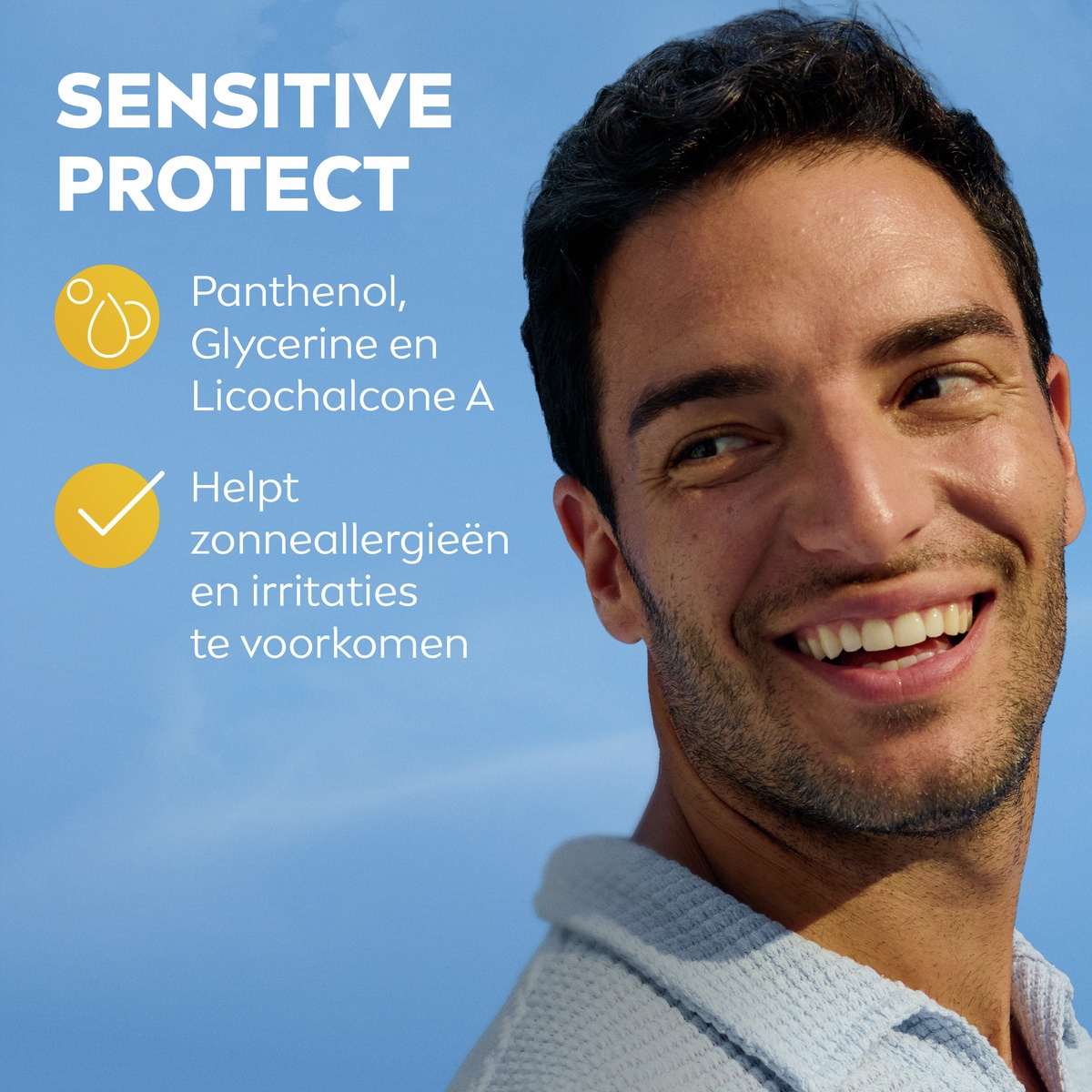 NIVEA SUN UV Face Sensitive SPF 50+ bestrijdt fotoveroudering zonder de poriën te verstoppen. Hydrateert reactieve huid en is geurvrij.