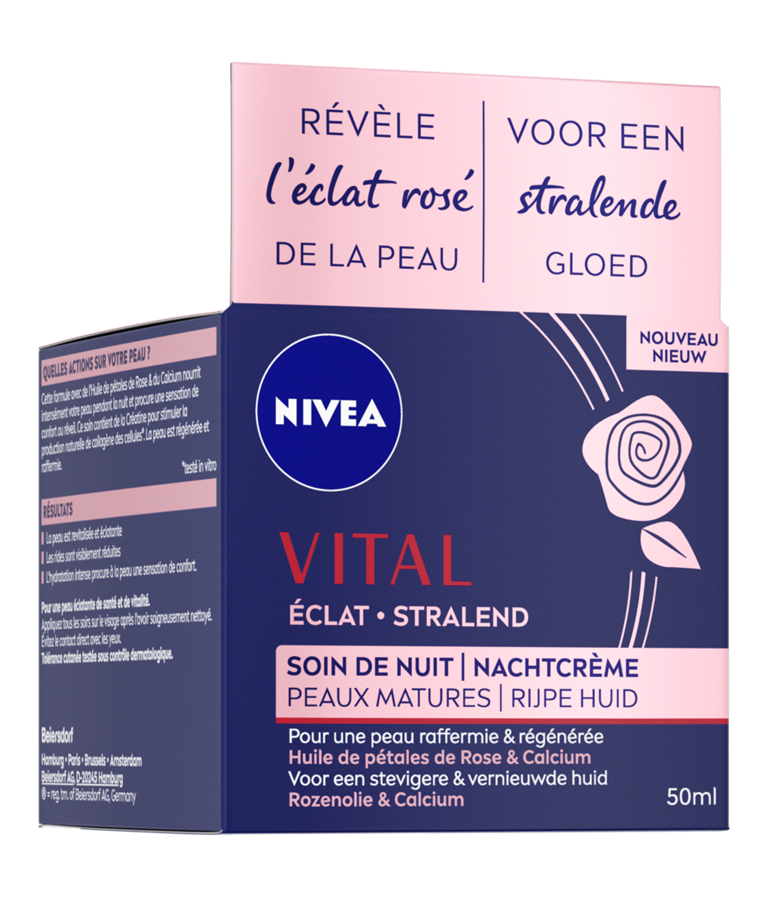 Vital Stralend Nachtcrème met Rozenolie & Calcium voor rijpe huid voedt de huid intensief voor een stralende en gezond uitziende huid.